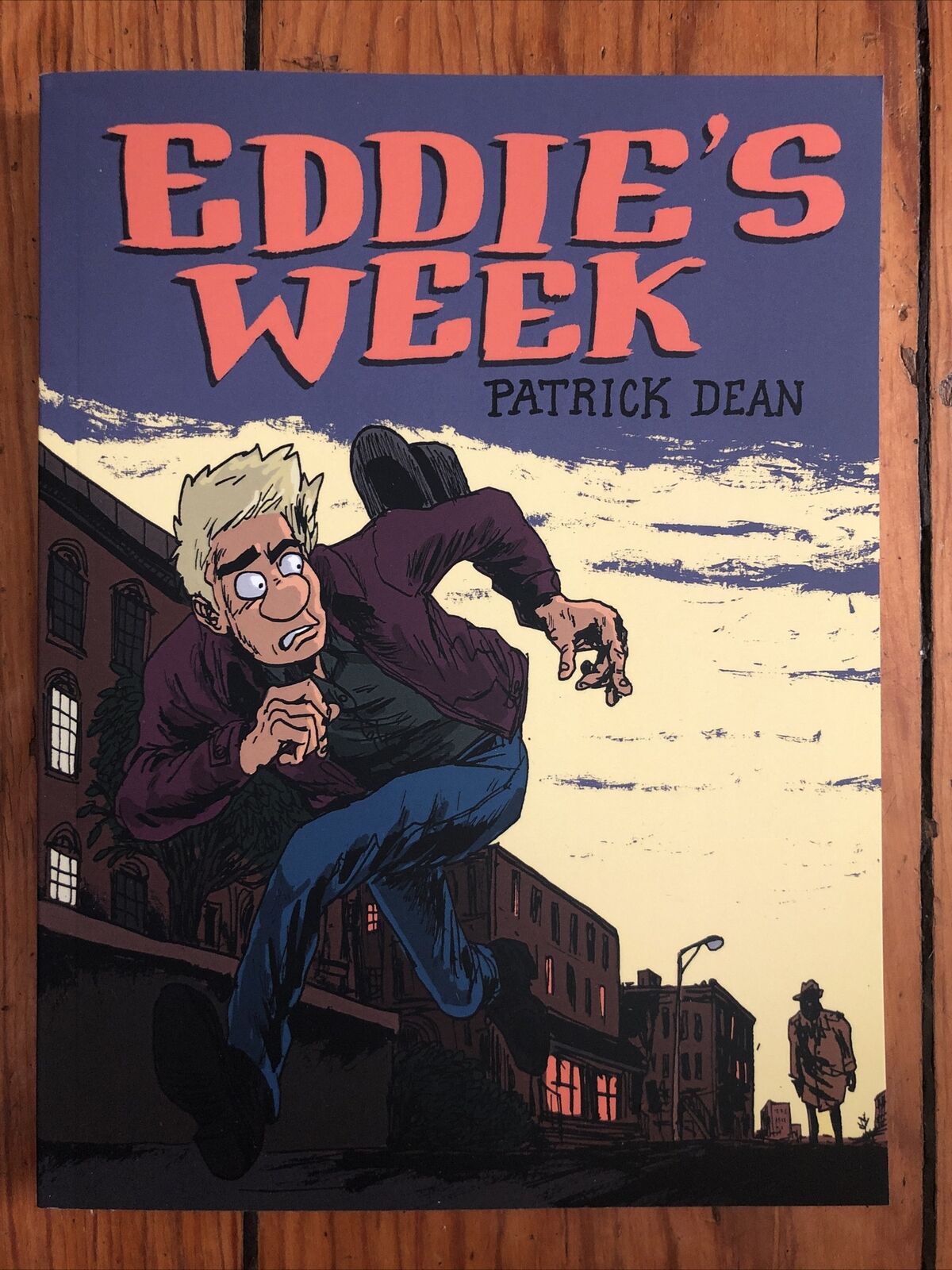 I love seeing how much of Patrick is in Eddie’s Week. Like Eddie, Patrick is obsessed with werewolves, old paperbacks and the combined gloom and joy of a big rainstorm. I like seeing Patrick’s gangly lope in Eddie, his great hair and hats, his amateur meteorology and joking asides that other characters often don’t seem to catch. Eddie’s tough, babely, wise-cracking ex-girlfriend Claire is so much like Patrick’s actual wife Erin that I feel certain Patrick borrowed some of Erin’s jokes for Claire to use.