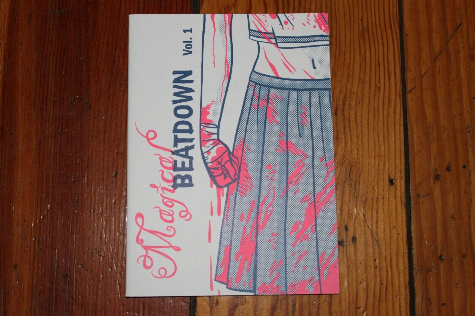 Jenn Woodall’s street-harassment revenge fantasy comic, Magical Beatdown, is a hyper-violent action anime. Printed with beautiful hot pink/blue risograph ink on thick matte cover-stock. 32 pages. 5"x7" Published by Silver Sprocket in 2019. $6 Cover price.