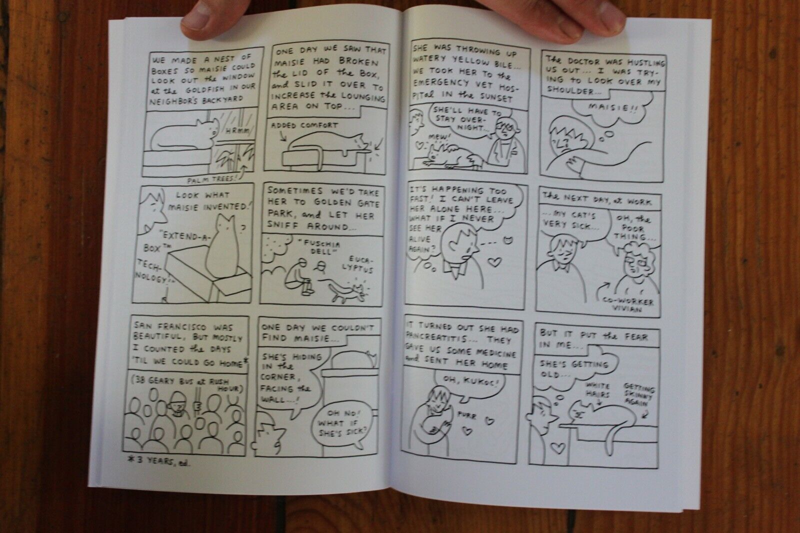 Here is it King-Cat fans..The long-awaited ALL-MAISIE issue! Featuring the life and story of Mr. Porcellino's beloved cat, Maisie Kukoc, who lived for an amazing 15 years! Includes a lengthy 41 pager namesake, photo, poem, and some other fun stuff. 44 mini-comic pages (8.5" x 5.5"). Cardstock covers. Black and white throughout. Published by Mr. Porcellino at Spit and a Half. May 2015.