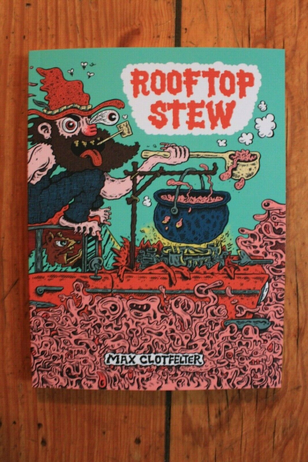 Rooftop Stew collects a plethora of Max Clotfelter’s depraved comics, both fictional and autobiographical, blending ‘60s psychedelic underground comic sensibility with Southern style debauchery. Full-color covers with black and white interior. Perfect-bound paperback book. 6" x 8", 120 pages. $12