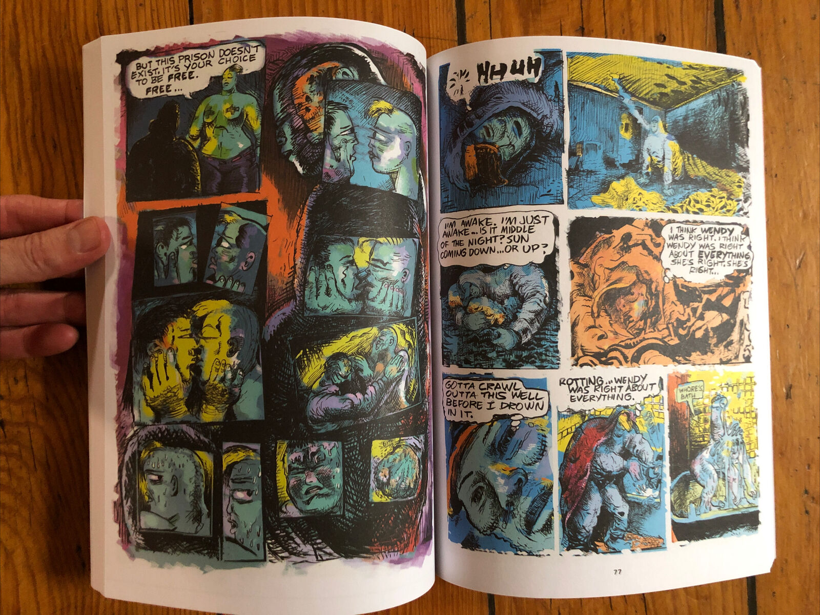 This sequel to Theth (Best American Comics 2014) takes place in Columbus Ohio in 1990, detailing twenty year old Theth attempts to define the looming shape of the future.This. cross genre comics apocalypse is like nothing else you have read. This features 186 pages of full color art, an introduction by Liana Finck, and pin ups by Finck, Jeff Test, Sam Spina and Janelle Hessig.