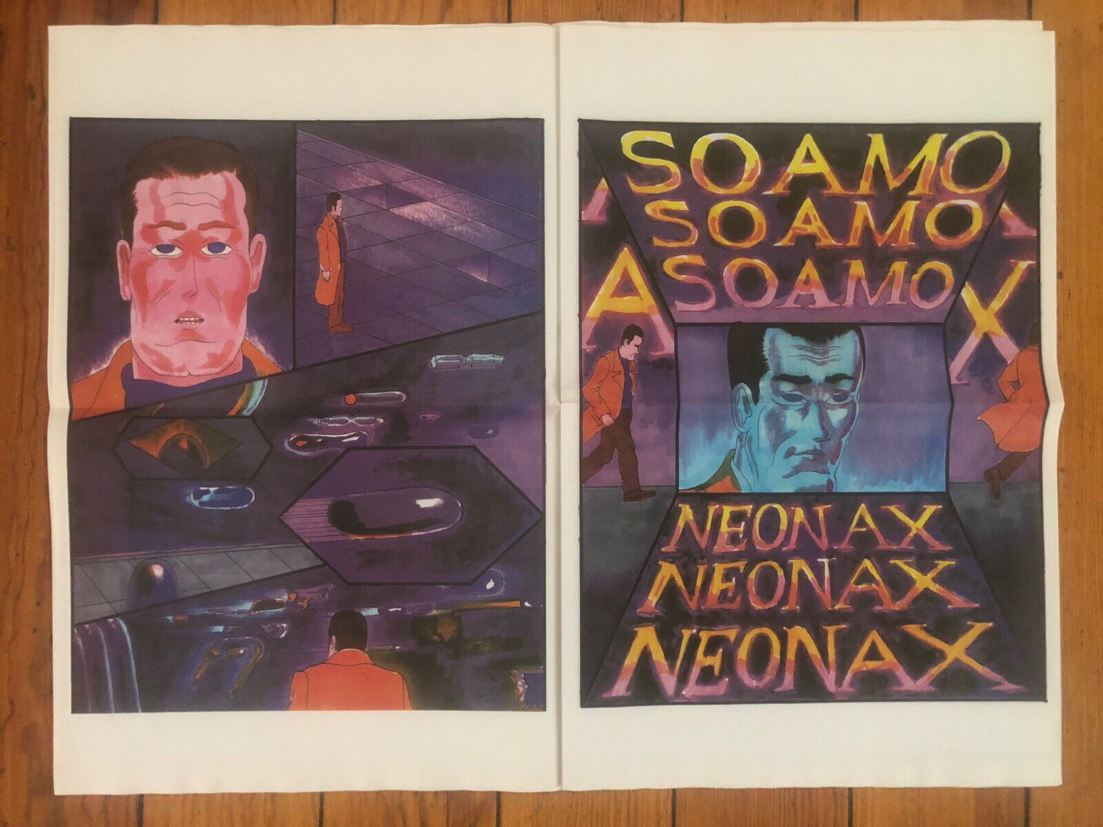 Limited to 1000 copies, 24 pages. 15″ x 22.75″ giant broadsheet newsprint comic paper, mostly full color with some black and white.
