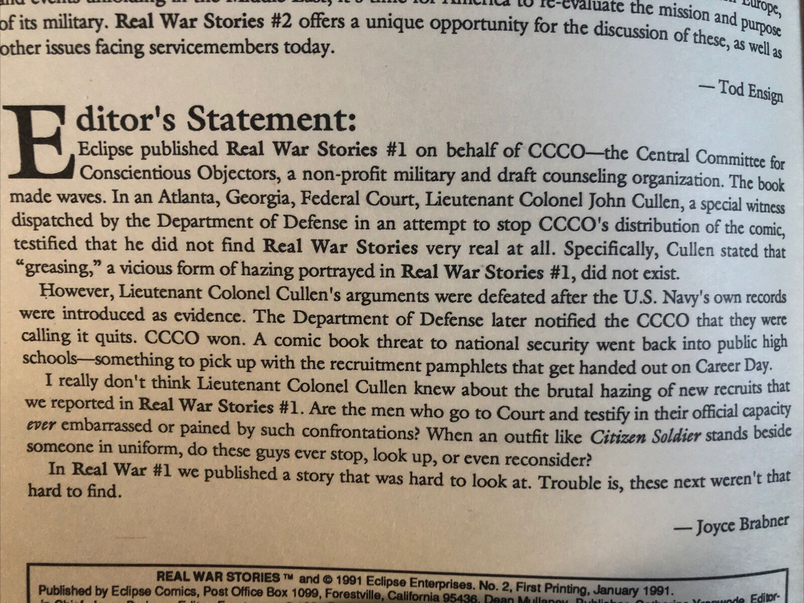 "Real War Stories" (Eclipse Comics 1991) Issue #2 w/ Paul Mavrides & Bill Sienkiewicz (Vintage New) **MATURE READERS**