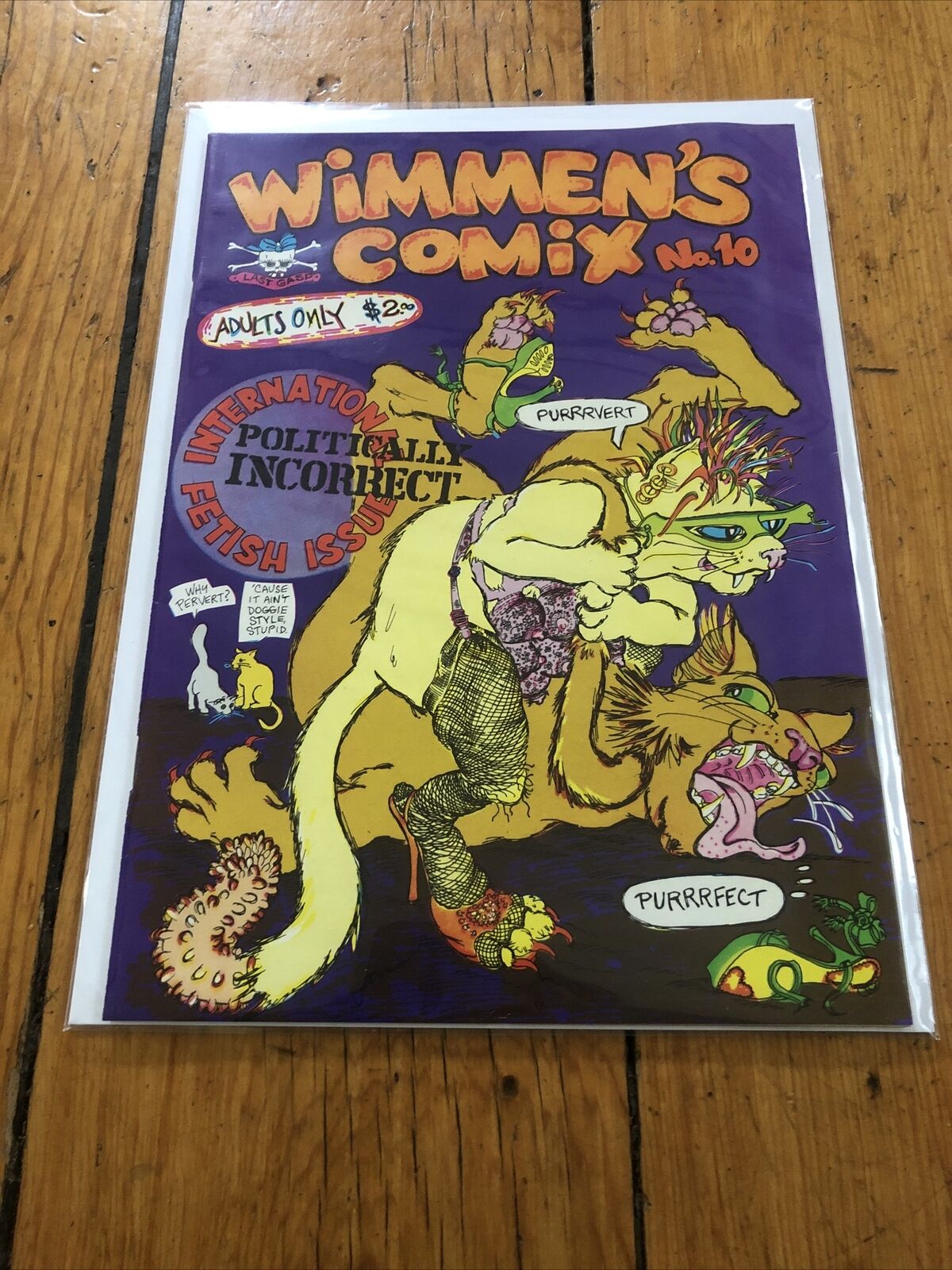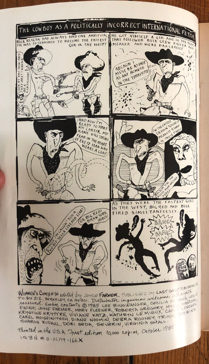 Wimmen's Comix #10! "International... Issue" —brought you by the Wimmins Comic Collective. Featuring comix legends Joyce Farmer, Mary Fleener, Roberta Gregory, Dori Seda, Trina Robbins, Diane Noomin, Myra Hancock, Krystine Kryttre, Viviane Katz, Kathryn Lemieux, Caryn Leschen, Carel Moiseiwitsch, Debra Rooney, Sharon Rudahl, Severin and Virginia Small! Printed in 1985.