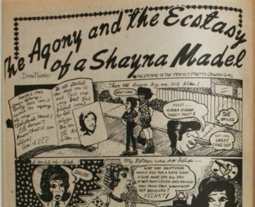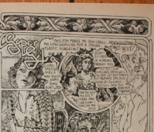 "The first all-women underground publication was the 1970 one-shot It Ain’t Me Babe, edited by Trina Robbins and Willy Mendes. Published by Ron Turner’s Last Gasp, the comic featured stories by Robbins and Mendes as well as Nancy Kalish, Meredith Kurtzman, Michele Brand, Lisa Lyons, and Carole. Although copies are hard to come by today, the book sold well enough that Turner agreed to an all-female series, Wimmen’s Comix, which launched in November 1972 as a collective with rotating editorship. From the start, Wimmen’s Comix deconstructed the sexist double standards applied to women in a quickly changing society... The collaborators also expanded the discussion of women’s sexuality with honest and personal explorations of all orientations... Beauty standards and body image were also frequent topics, as in “Goldie” by Aline Kominsky. Wimmen’s Comix endured with an irregular publishing schedule until 1992, later featuring landmark creators, including Melinda Gebbie, Phoebe Gloeckner, Roberta Gregory, Shary Flenniken, Dori Seda, Diane Noomin, and many more. A few months before the founding of Wimmen’s Comix, Joyce Farmer (then Sutton) and Lyn Chevli founded their own series T*ts & Cl*ts Comix in July 1972, self-published under the Nanny Goat Productions banner. The first few issues exclusively featured work by Farmer and Chevli, like (the) parody ad from the back cover of #3..