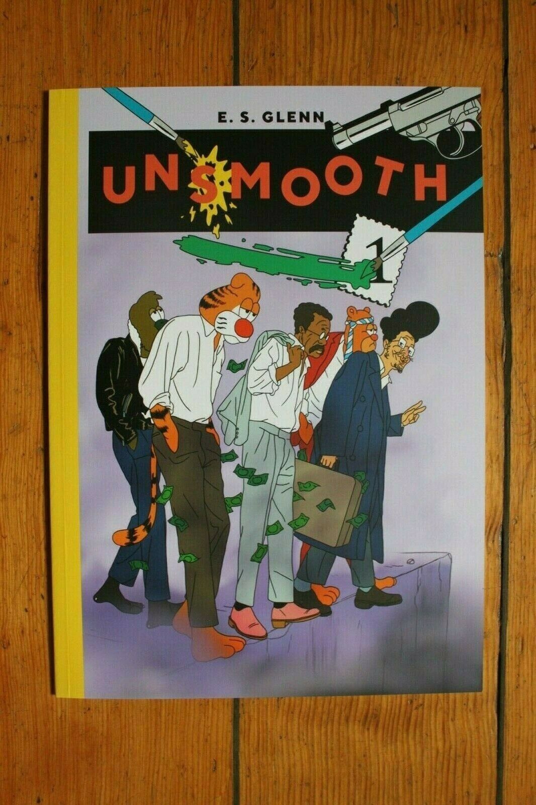 E. S. Glenn had bad luck when it came to producing and selling his artwork. Witness the portrait of an artist as he enters the criminal underworld. Rendered in a clean line European style, Unsmooth is a semi-autobiographical graphic album that introduces the reader to the idiosyncratic world of artist turned petty thief turned assassin, E. S. Glenn.