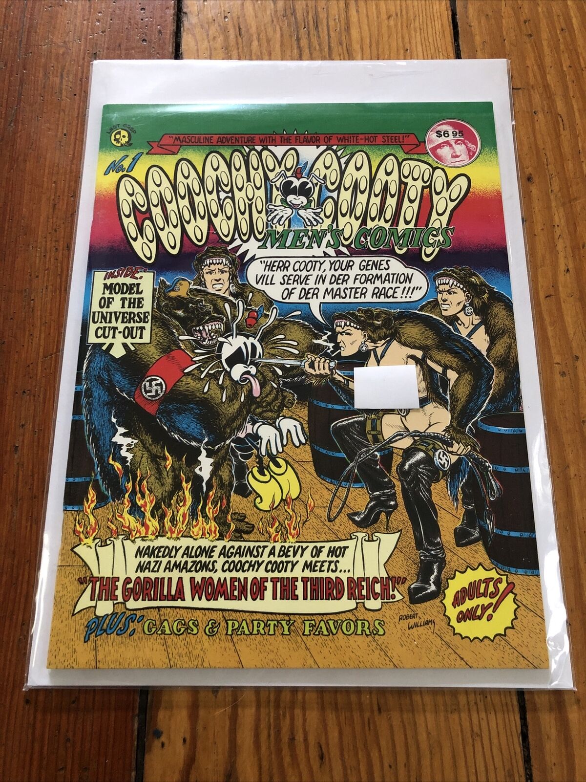 Quality underground comics by former Zap contributor, godfather of lowbrow and founder of the infamous Juxtapoz Magazine, Mr. Robert Williams! This is the gorgeous second edition by Last Gasp in 1994, printed on heavy-duty white paper with thick cardstock covers. Features stories: "Pee for Free A Penny A Poop", "The Pursuit of The...", "Law of the Lame" and Coochy Cooty in "The Gorilla Woman of the Third Reich".