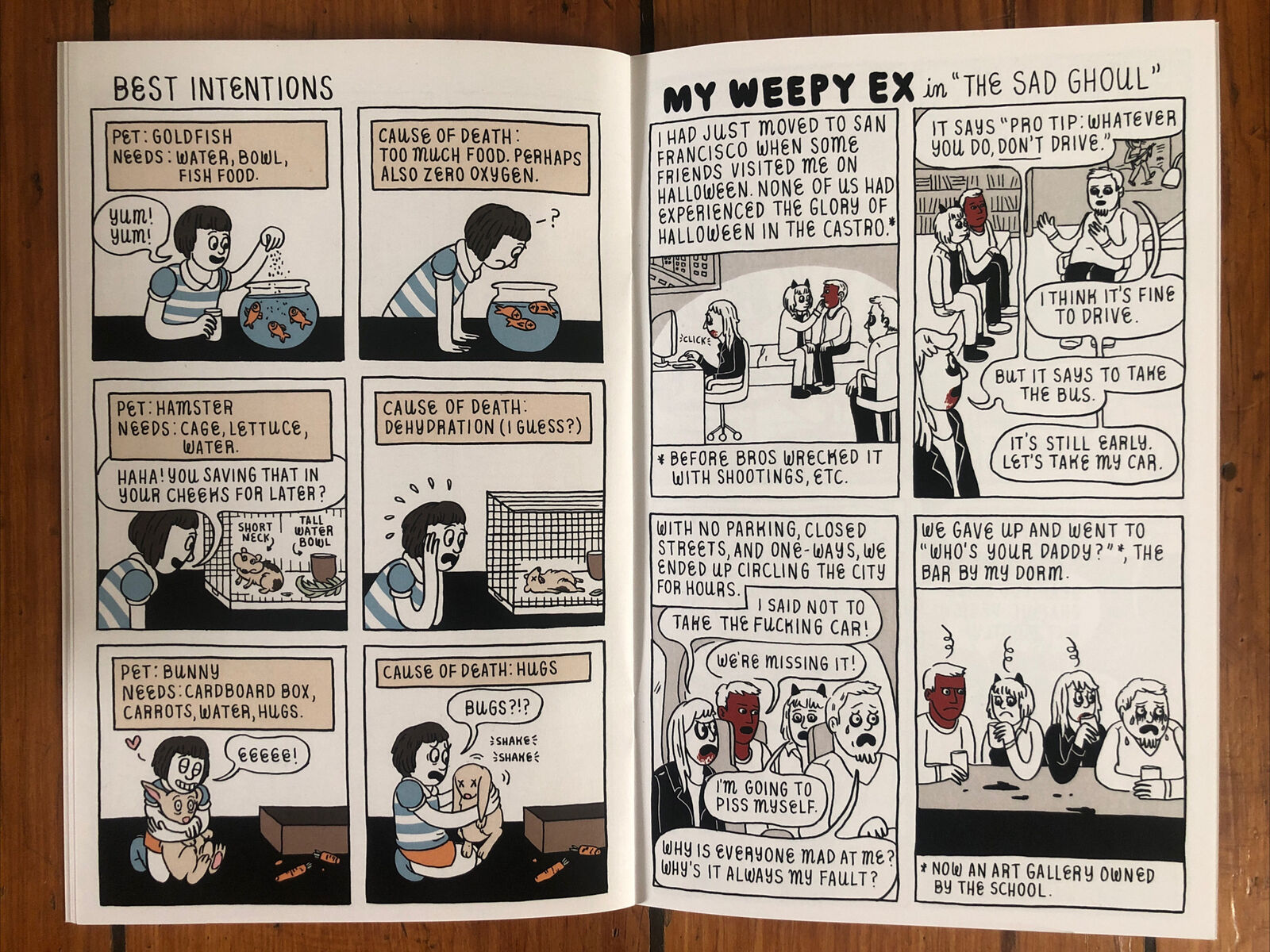 Issue #3: The latest issue of November’s Funky Fresh comics features Suspicious Pills, Odd Things I Did as a Child, Weed-Fueled Regret, Best Intentions, and more… this is her best yet! Nicely drawn and funny as hell. In color! 5.5" x 8.5", 20 pages. $5. Full-color cover and interior.